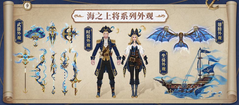战船系统已全面开启,为助力将军乘风破浪,藏衣阁特别推出全新套装【海之上将】系列外观。